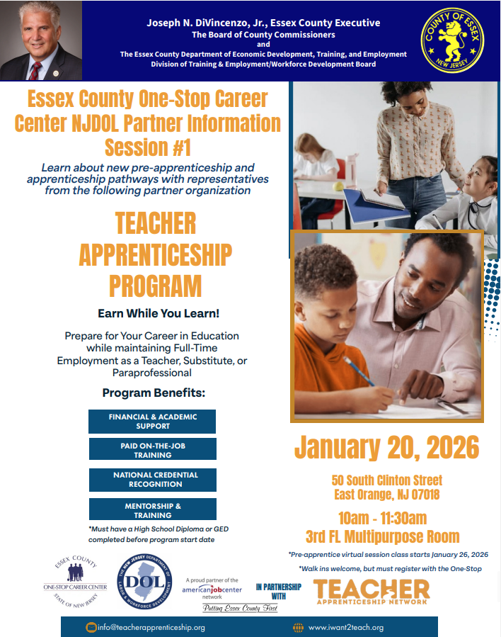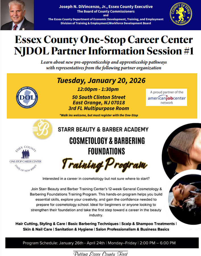 Essex County One-Stop Career Center NJDOL Partner Information Sessions - January 20, 2026
