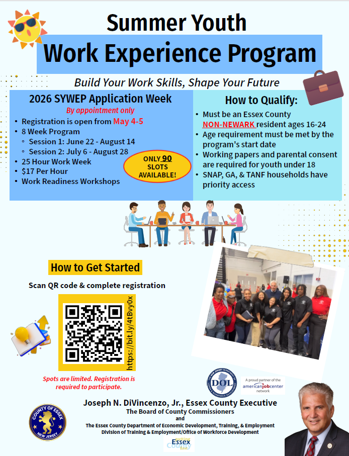 Welcome to the Essex County Summer Youth Employment Program (SYWEP) 2026 registration process.